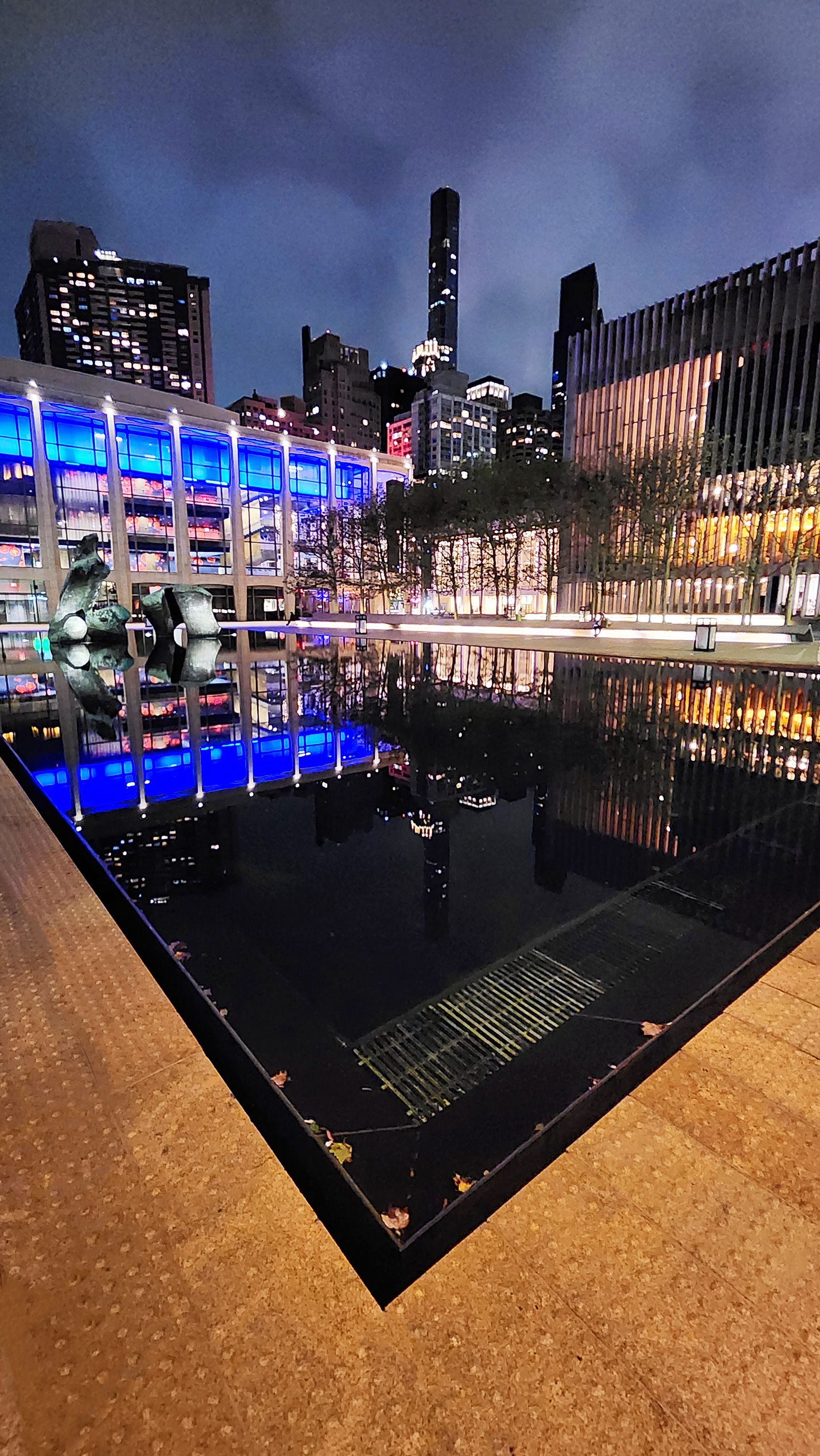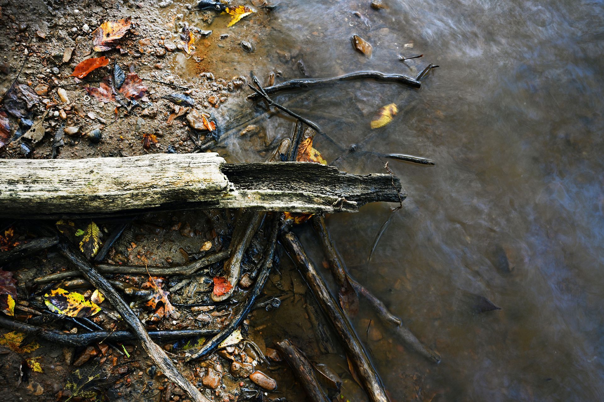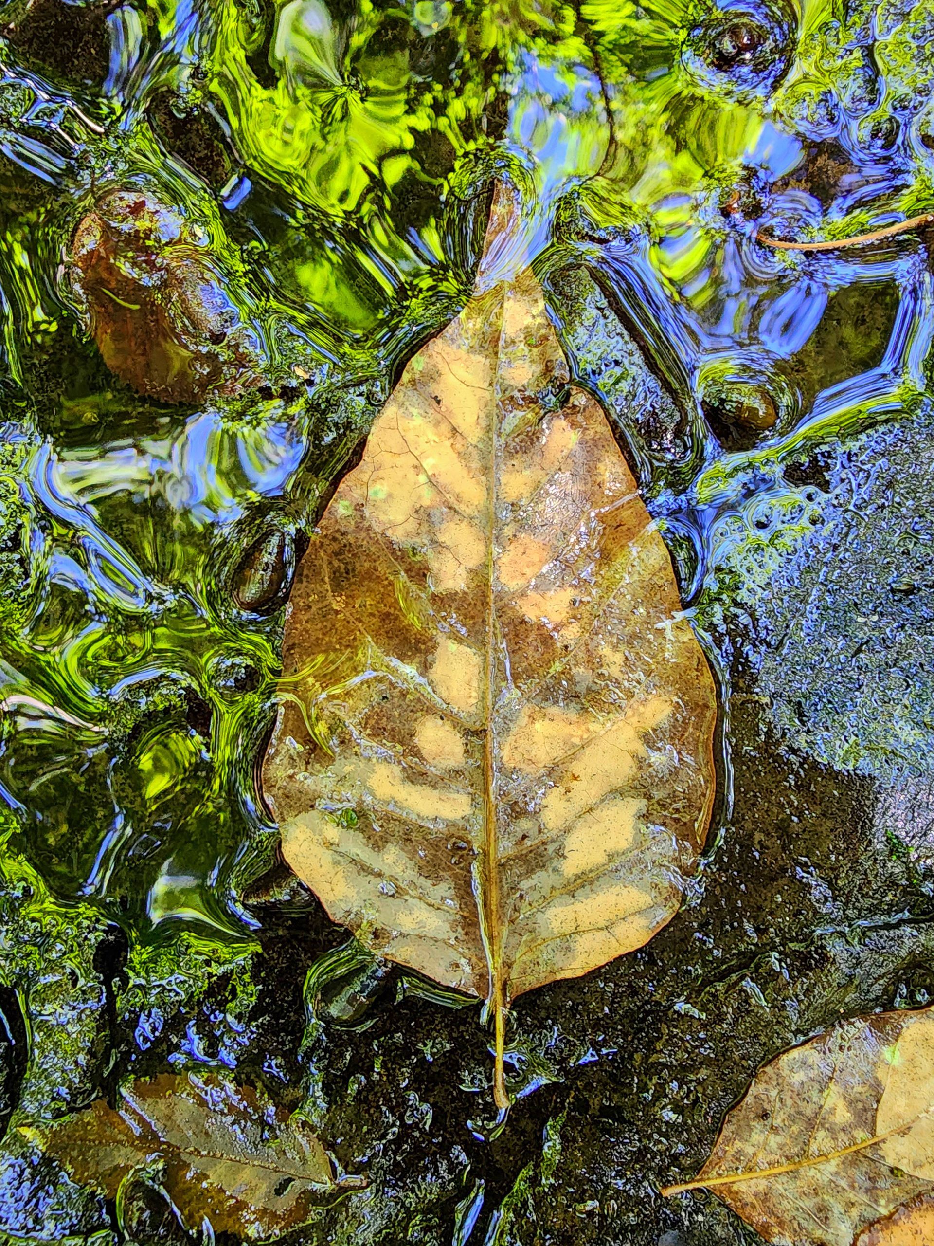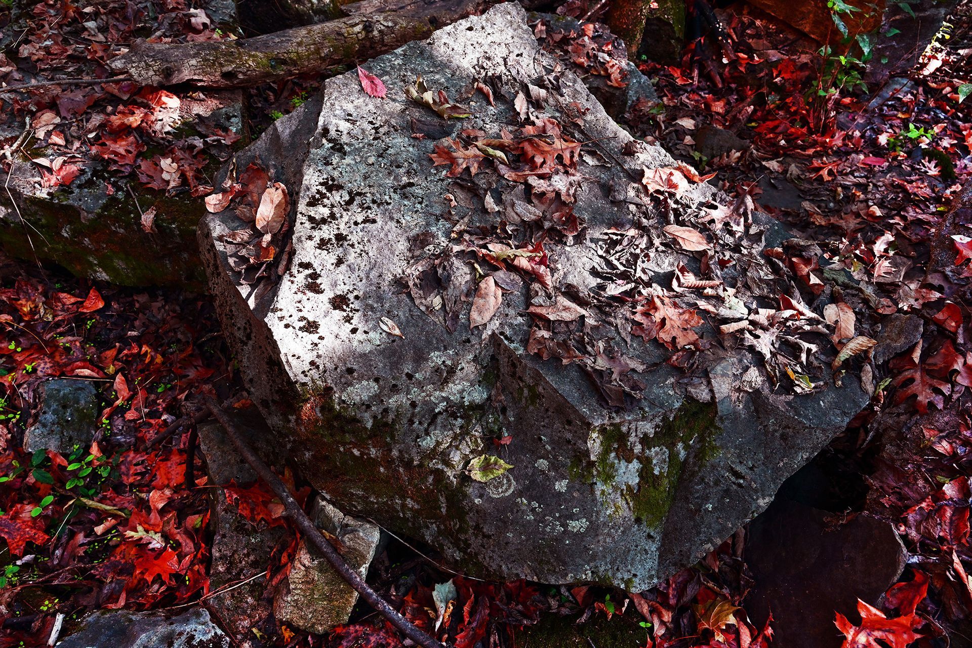 These images were hard for me to put in one category. There’s architecture, still life, nature, and quite a few other topics. I put together what I shot based on elements of design that fascinated me. That leaf with the green reflection on the water, the parking lot with haphazard yellow and white markings, the clouds mixing in with the skyscraper of glass, and the large stone with the red leaves of autumn scattered around, grew into some of my favorite photographs.