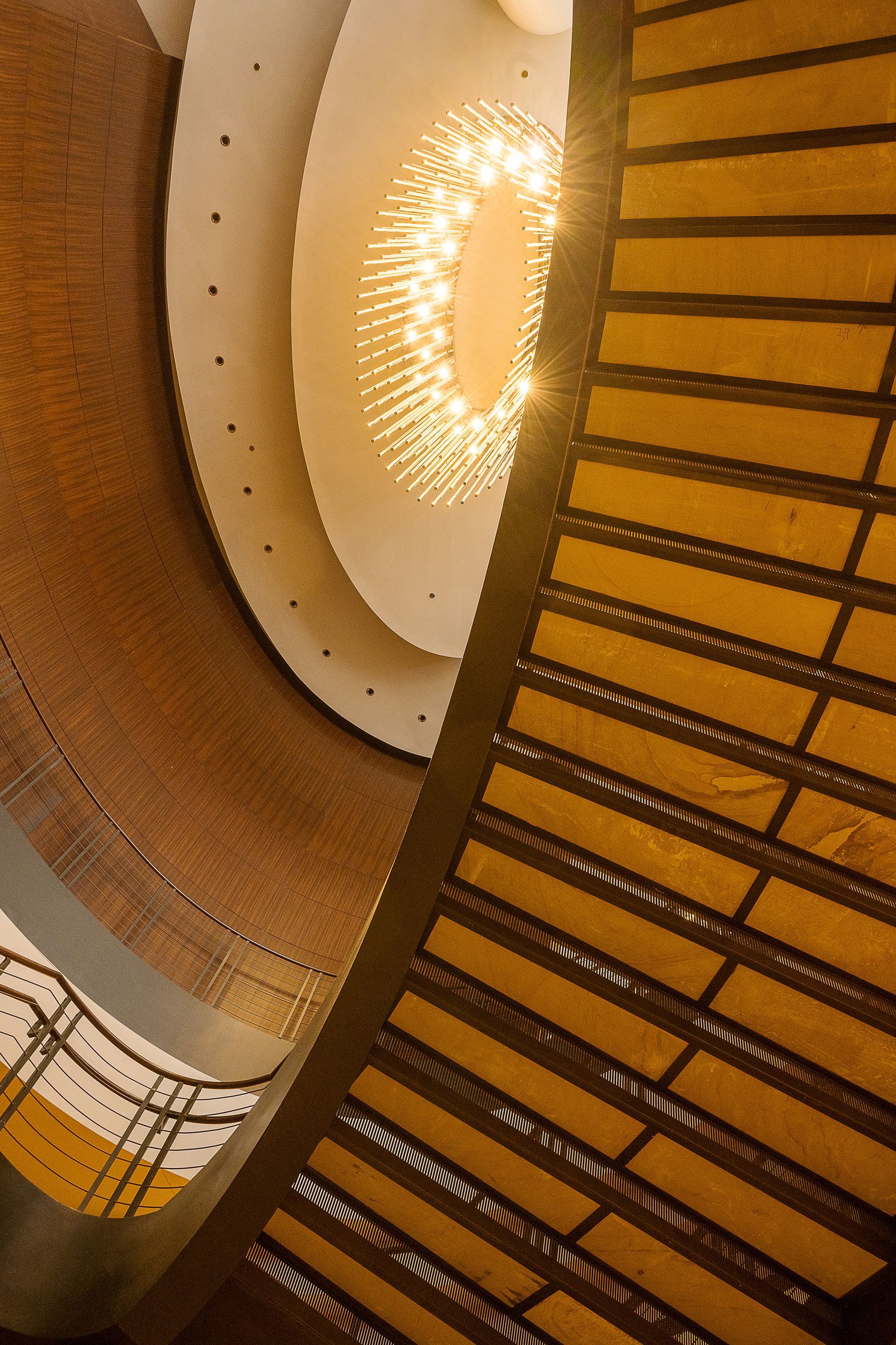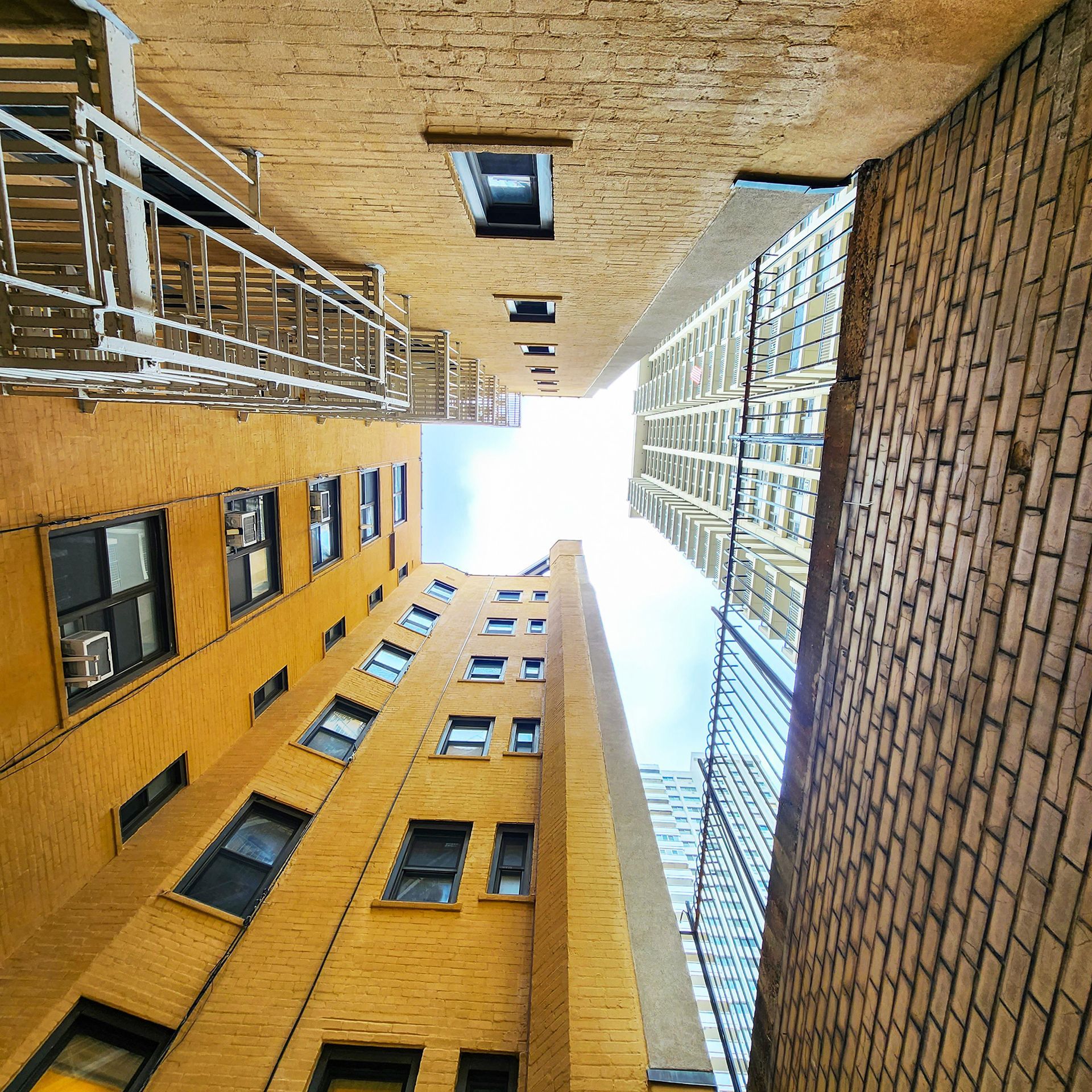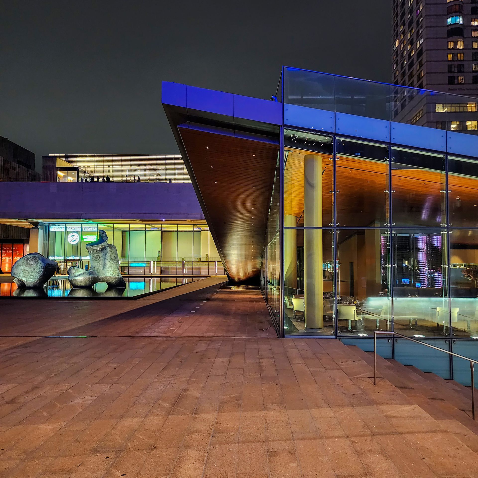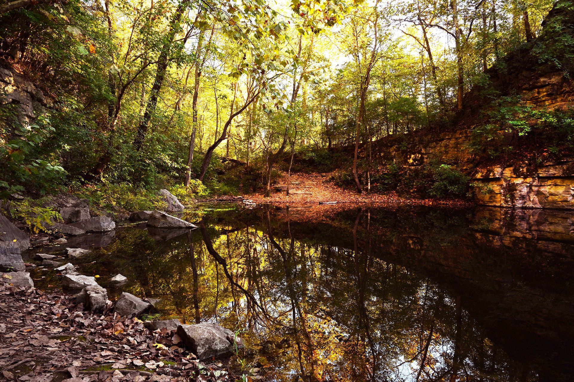 These images were hard for me to put in one category. There’s architecture, still life, nature, and quite a few other topics. I put together what I shot based on elements of design that fascinated me. That leaf with the green reflection on the water, the parking lot with haphazard yellow and white markings, the clouds mixing in with the skyscraper of glass, and the large stone with the red leaves of autumn scattered around, grew into some of my favorite photographs.